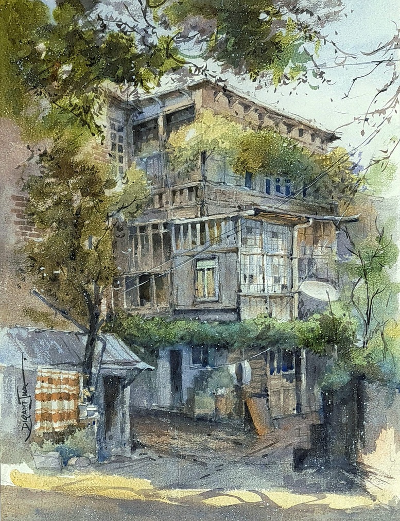 There is something ‘enticing’ in this painting. The weathered structure, the wood, the brick…The way the greenery is so fresh against the old, worn home with its layers and features is almost magical. Details like sunlight filtering through the trees make this feel so ‘real’.